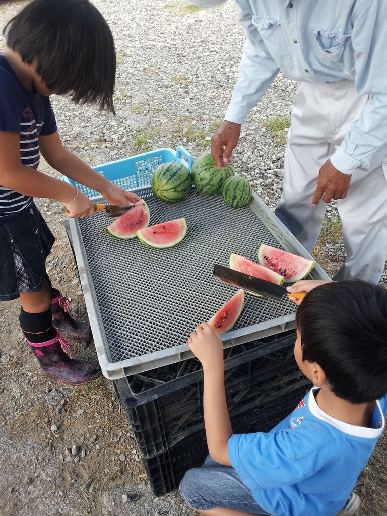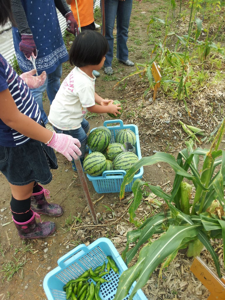 でも、大きく育ったスイカやメロンに子どもたちは大はしゃぎです。