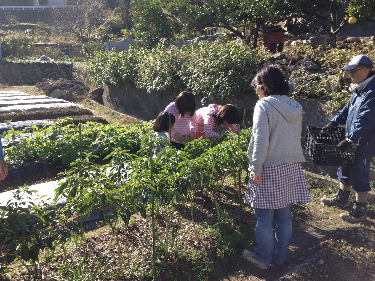 収穫した野菜はお持ち帰りです。一番うれしいのはお母さん?