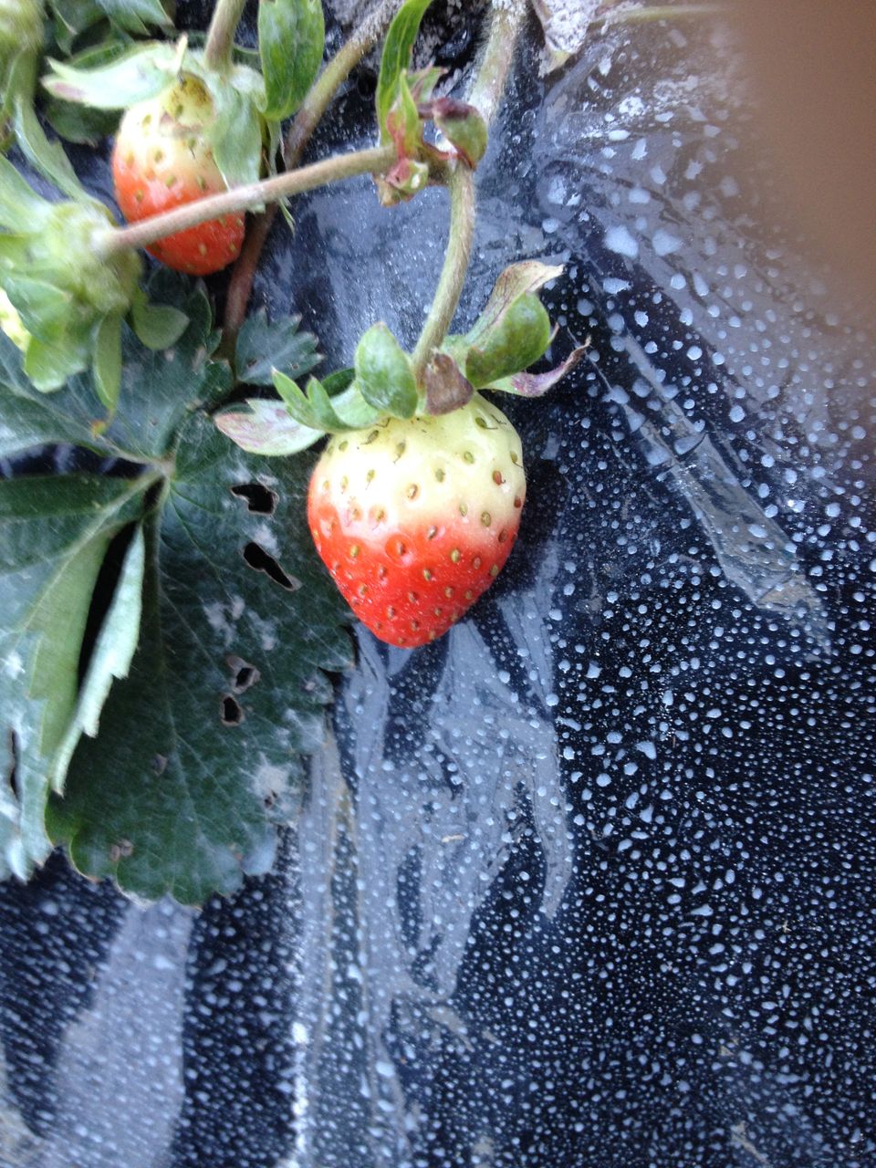 苺が少しずつ色付きはじめています。